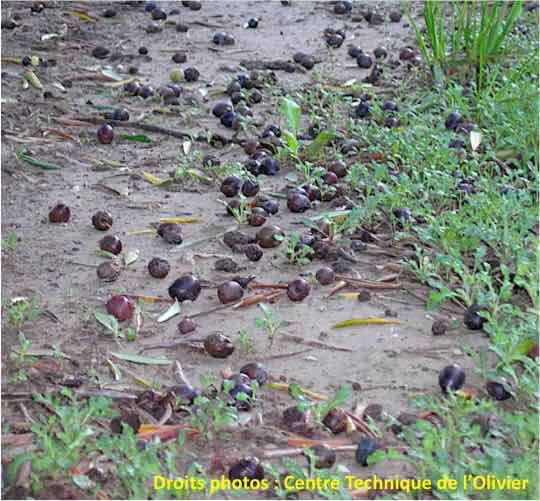 - Lorsque les olives nécrosées sont récoltées, la qualité de l’huile s’en trouve dépréciée : faible intensité aromatique, amertume peu marquée, défauts perceptibles, faible aptitude à la conservation…
